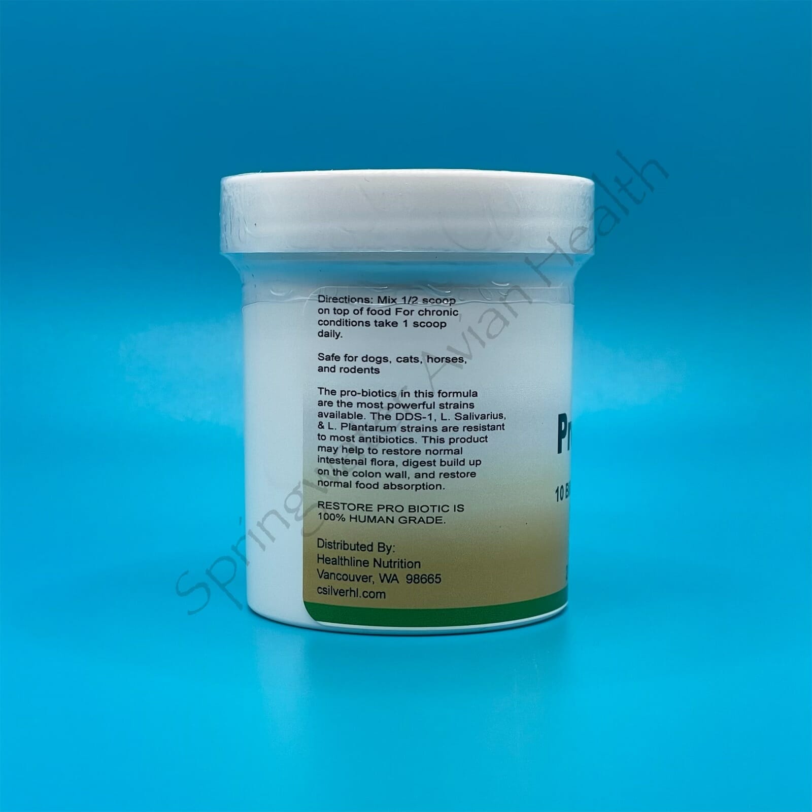 Healthline Restore Pro-Biotic contains 3 powerful probiotics including one, L Salivarius, that has been studied for use in poultry and proven to be very beneficial in prevention of disease and shortening recovery times when disease/infection have been an issue in your bird/flock.