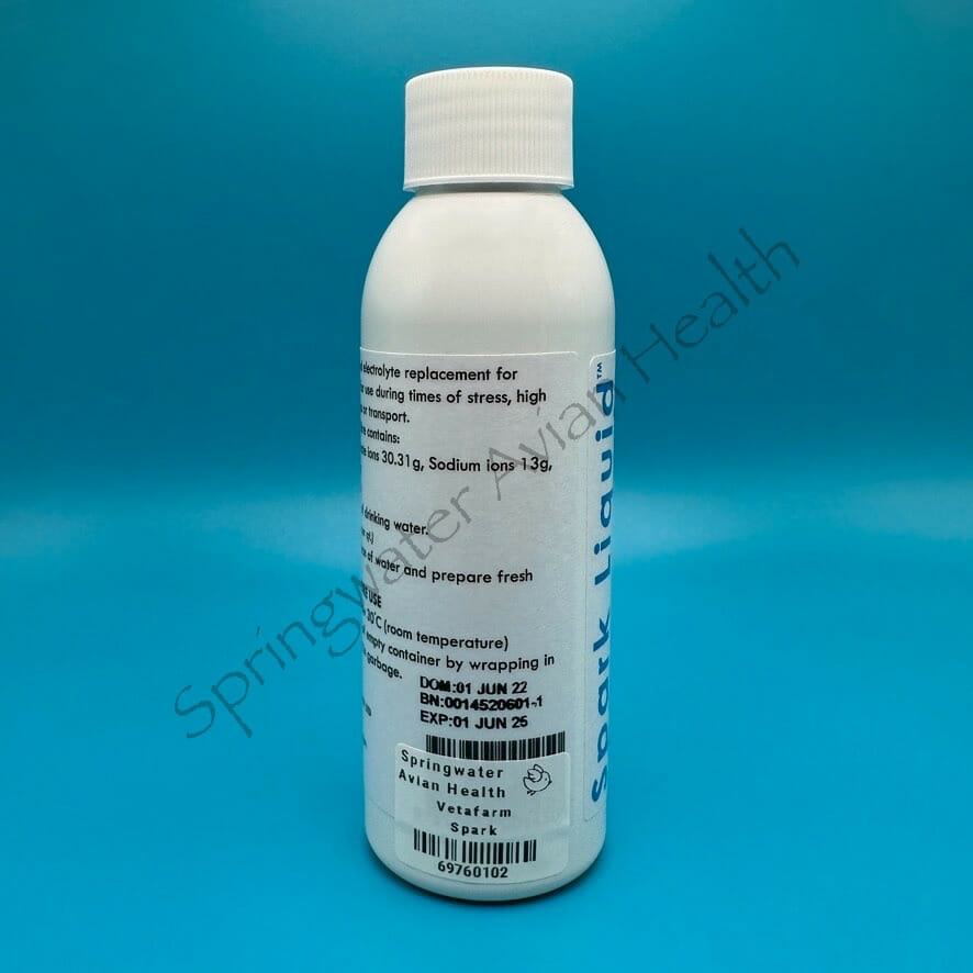 Vetafarm Spark is an electrolyte concentrate solution for all birds. It can be mixed into your birds fresh drinking water in times of extreme heat, illness and stress. Vetafarm Spark can also be used in critical care and can be mixed with our Avian Health Shake for tube feeding.